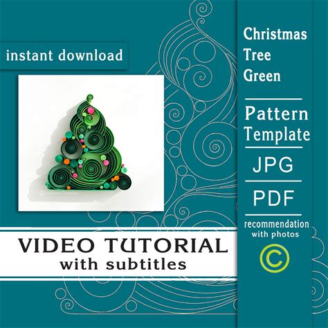 Christmas Tree Green / Video Tutorial With Subtitles / Quilling Paper Art / Step By Step / Template / Pattern / Instant Download